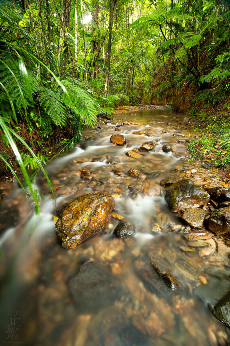 The creek, rainfall, and surrounding forest create a constantly changing soundscape.